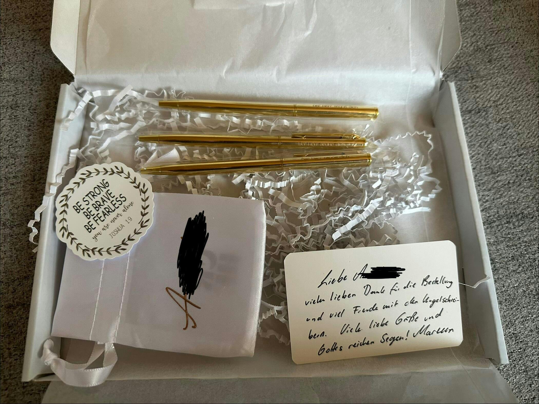Mache deinen Liebsten eine Freude, indem du ihnen unseren edlen, goldenen Kugelschreiber mit ermutigendem, christlichem Bibelvers schenkst.